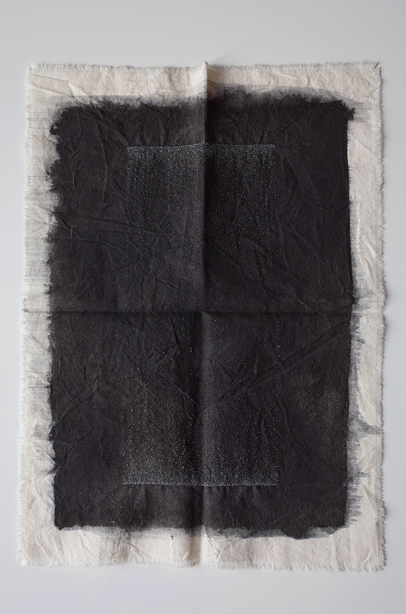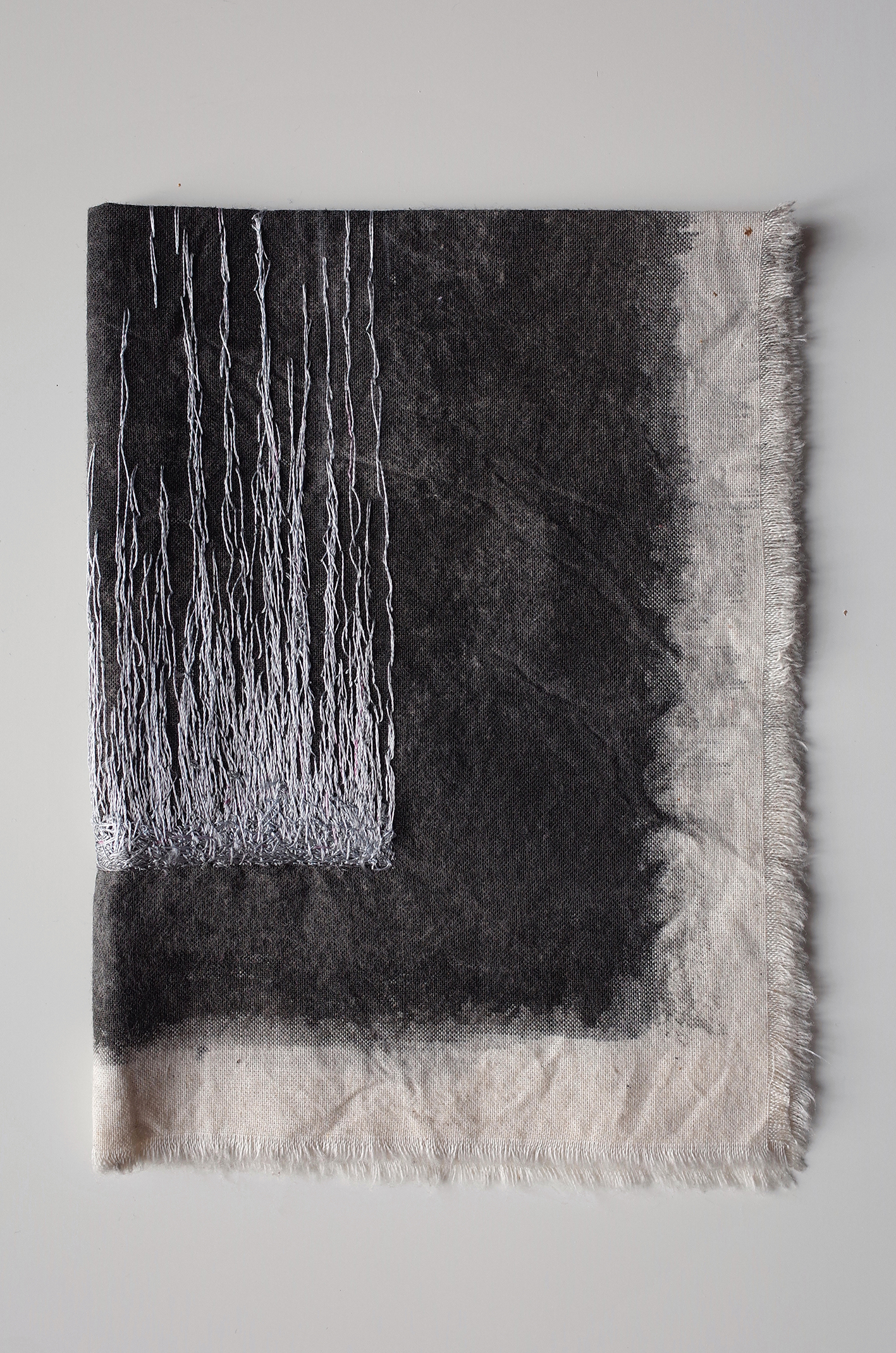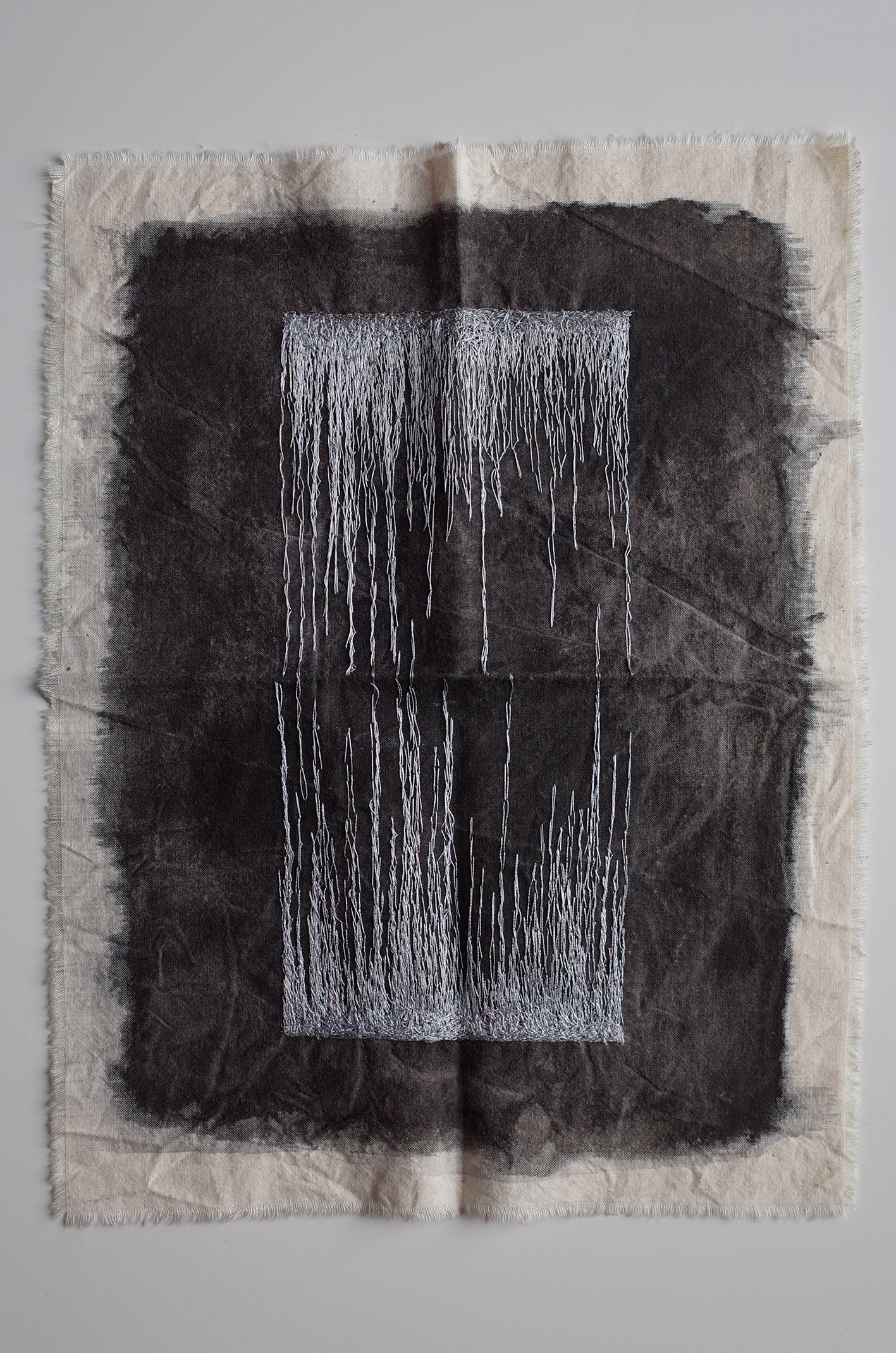 LA GIUSTA MISURA, inchiostro e ricamo a mano su tela di cotone, 26X36x0,1 cm, 2022.