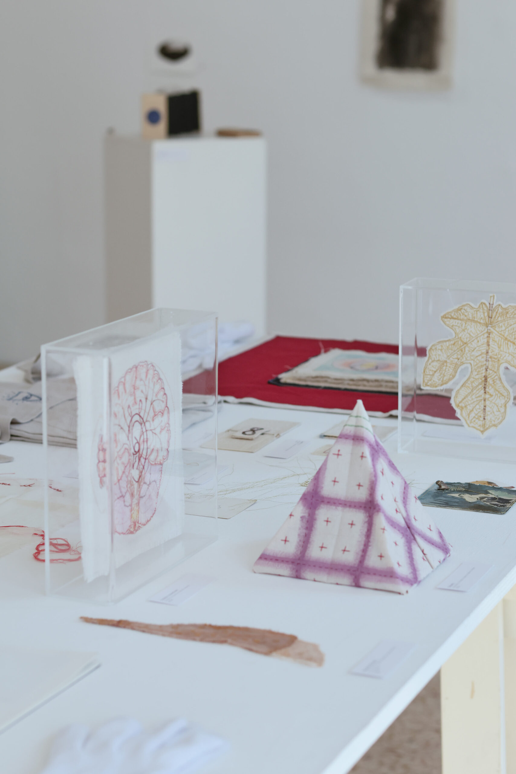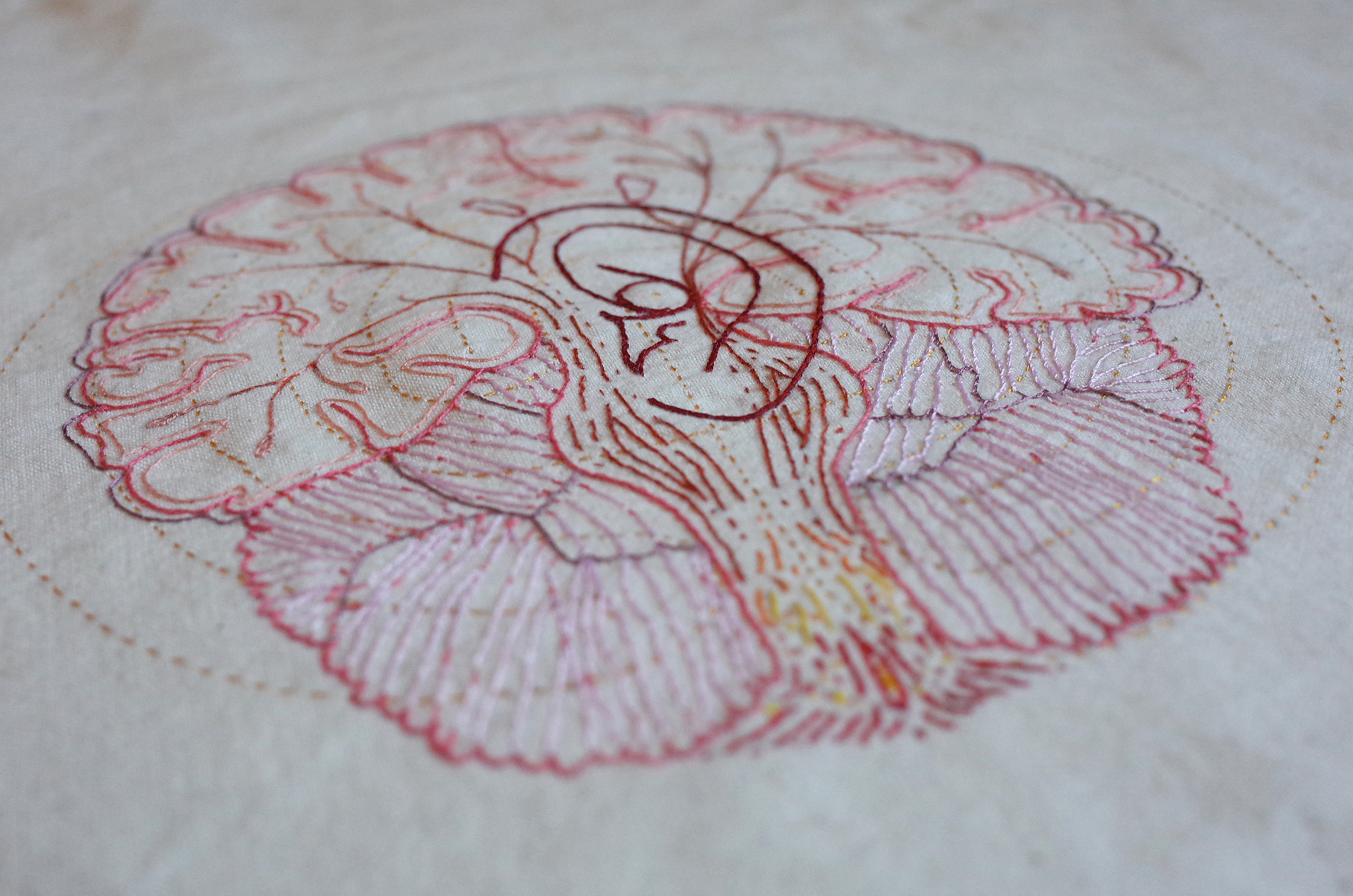 COSMIC OUVERTURE, ricamo a mano su tela di cotone, 16,5x16,5 cm, 2023, l’opera è contenuta in una teca di plexiglas 22x22x6,5 cm.
