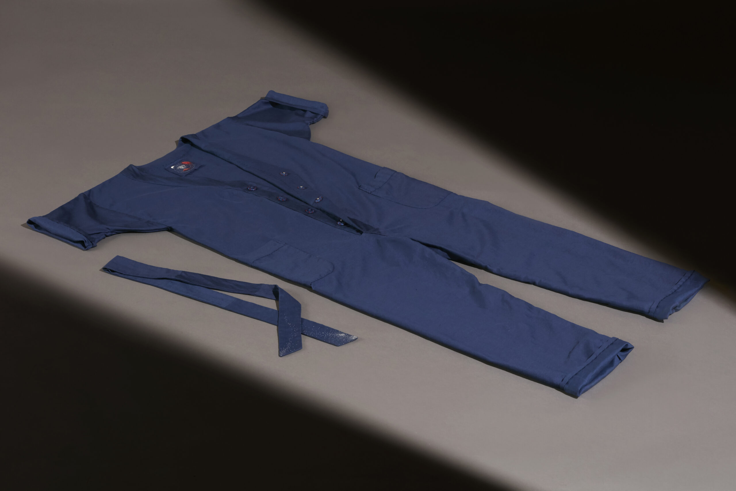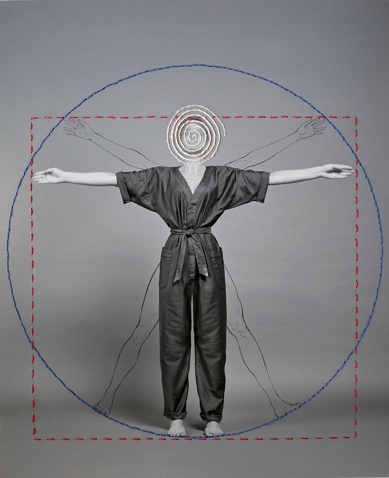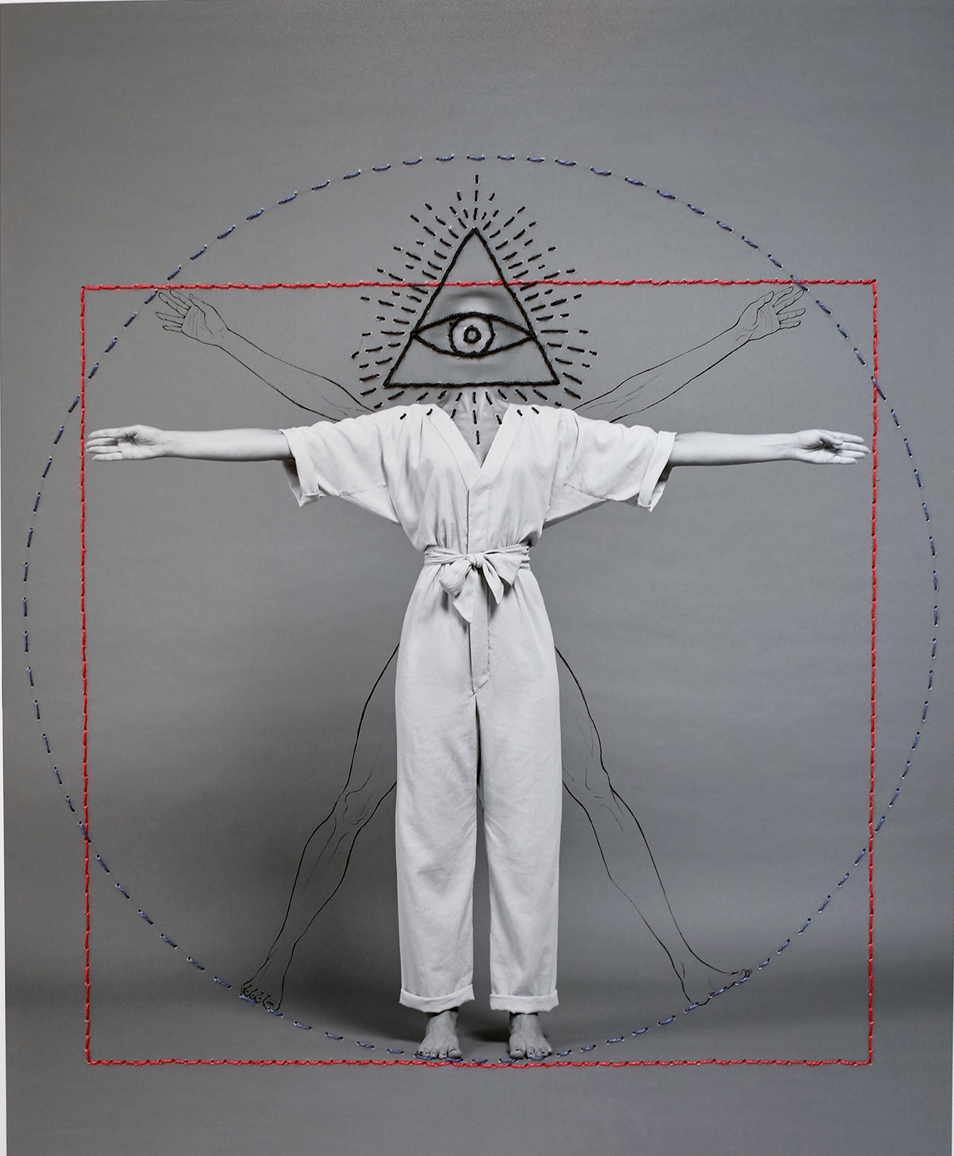 ABITO, MISURA DELL’UOMO, tuta cucita a mano con “decorazioni interne” ricamate, 2021 (opera realizzata in collaborazione con Laura Campomizzi).