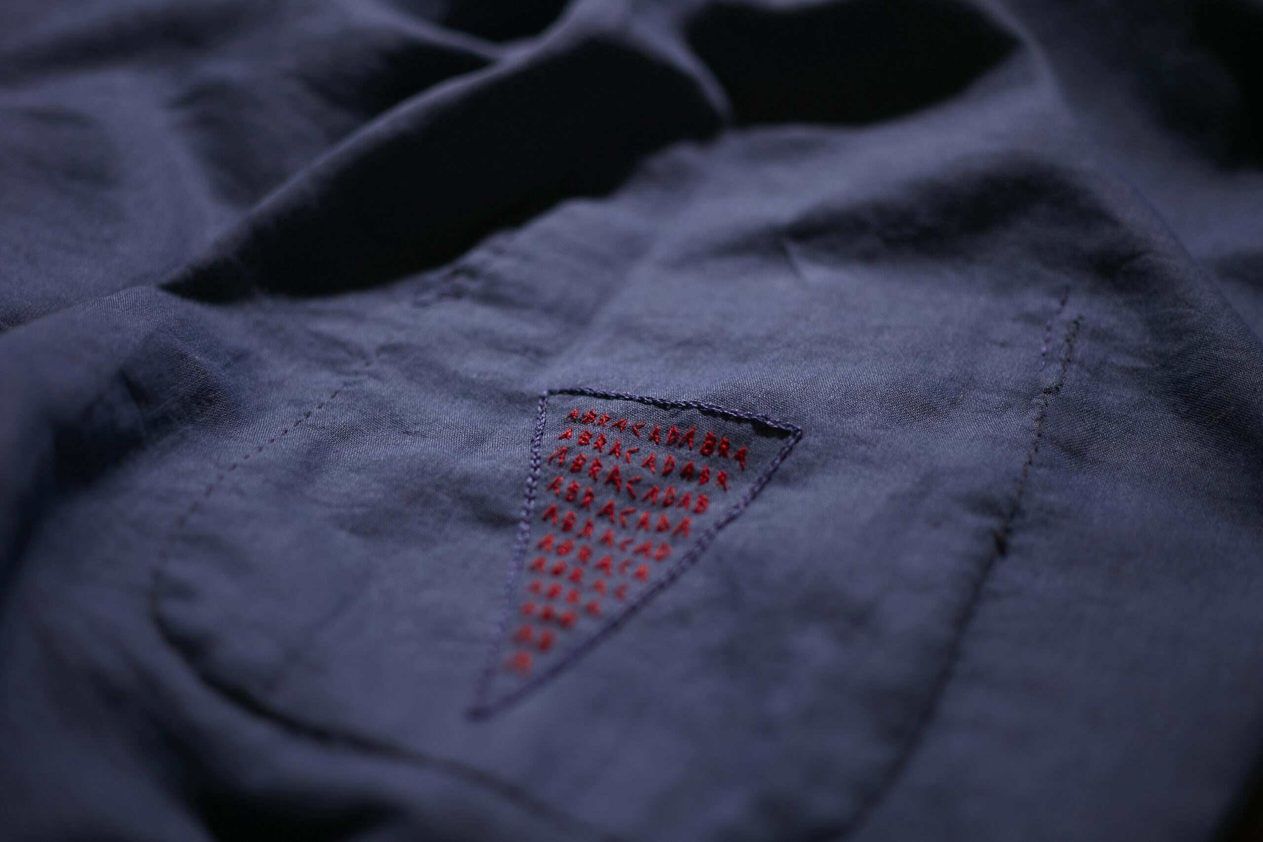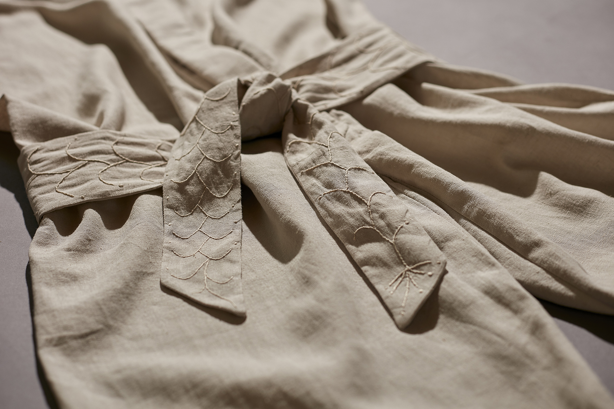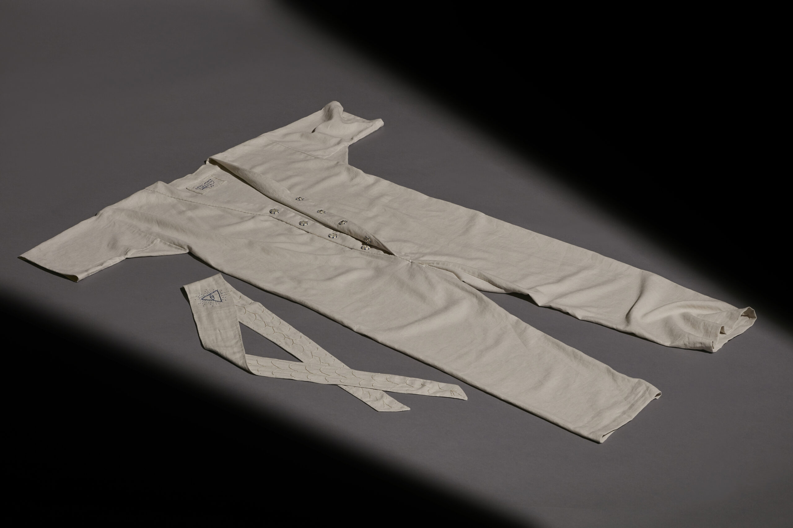 ABITO, MISURA DELL’UOMO, tuta cucita a mano con “decorazioni interne” ricamate, 2021 (opera realizzata in collaborazione con Laura Campomizzi).