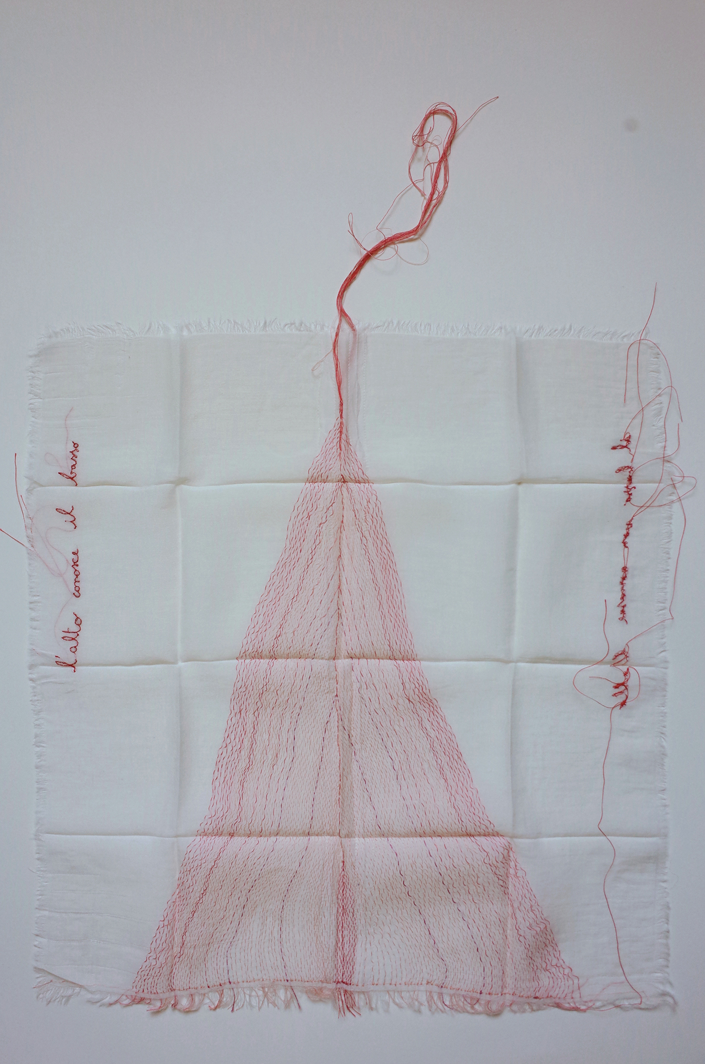 SALIRE, ricamo a mano su tela cotone e seta, 37x40x0,1 cm, 2023.